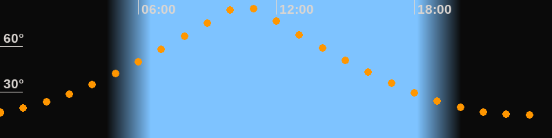 | Höchster Stand (Kulmination) | 10:33 Uhr (h = 86,1°) |