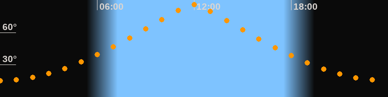 | Höchster Stand (Kulmination) | 11:57 Uhr (h = 86,1°) |