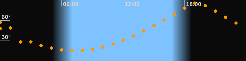 | Höchster Stand (Kulmination) | 19:14 Uhr (h = 86,1°) |