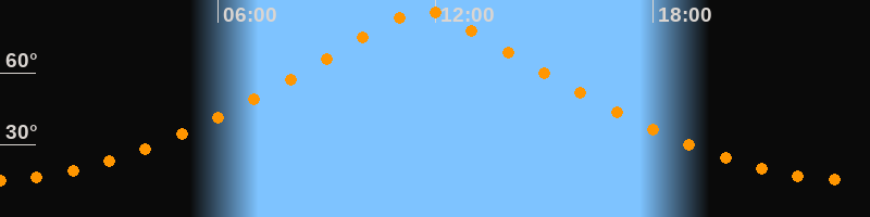 | Höchster Stand (Kulmination) | 11:39 Uhr (h = 86,1°) |