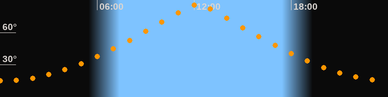 | Höchster Stand (Kulmination) | 12:11 Uhr (h = 86,1°) |