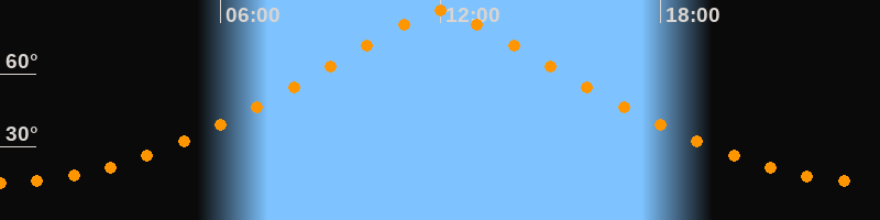 | Höchster Stand (Kulmination) | 11:59 Uhr (h = 86,1°) |
