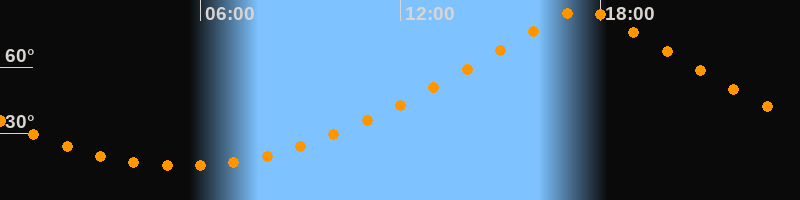 | Höchster Stand (Kulmination) | 17:28 Uhr (h = 86,1°) |