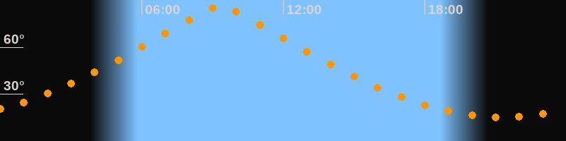 | Höchster Stand (Kulmination) | 09:18 Uhr (h = 86,1°) |