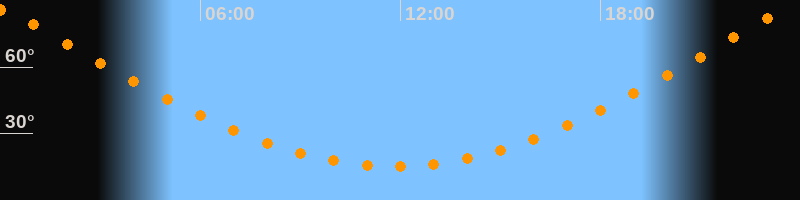 | Höchster Stand (Kulmination) | 23:48 Uhr (h = 86,1°) |
