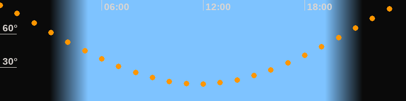 | Höchster Stand (Kulmination) | 23:44 Uhr (h = 86,1°) |