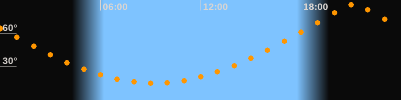 | Höchster Stand (Kulmination) | 21:11 Uhr (h = 86,1°) |