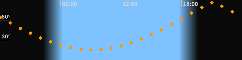 | Höchster Stand (Kulmination) | 21:07 Uhr (h = 86,1°) |