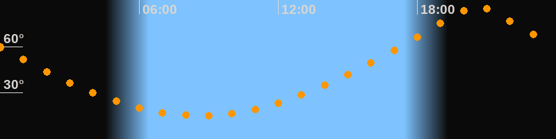 | Höchster Stand (Kulmination) | 20:35 Uhr (h = 86,1°) |