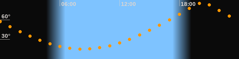 | Höchster Stand (Kulmination) | 20:19 Uhr (h = 86,1°) |