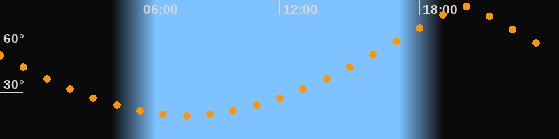 | Höchster Stand (Kulmination) | 19:57 Uhr (h = 86,1°) |