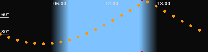 | Höchster Stand (Kulmination) | 16:55 Uhr (h = 87°) |