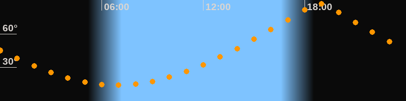 | Höchster Stand (Kulmination) | 18:52 Uhr (h = 87°) |
