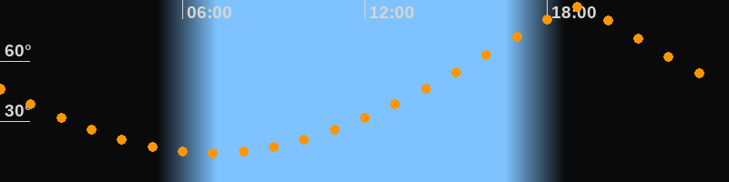 | Höchster Stand (Kulmination) | 18:57 Uhr (h = 87°) |