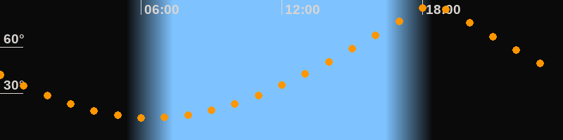 | Höchster Stand (Kulmination) | 18:26 Uhr (h = 87°) |