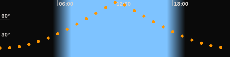 | Höchster Stand (Kulmination) | 12:13 Uhr (h = 87°) |