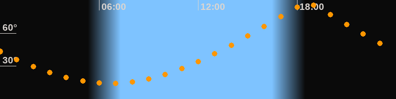 | Höchster Stand (Kulmination) | 18:36 Uhr (h = 87°) |