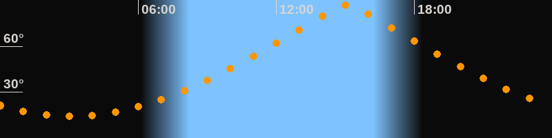 | Höchster Stand (Kulmination) | 15:04 Uhr (h = 87°) |