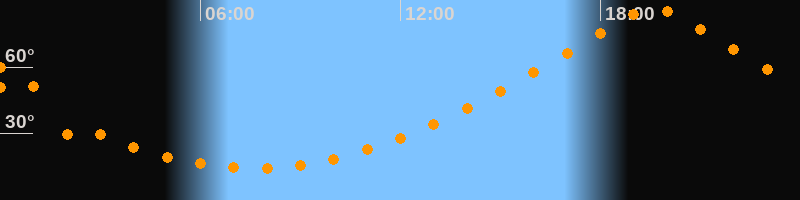 | Höchster Stand (Kulmination) | 19:35 Uhr (h = 87°) |