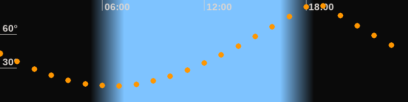 | Höchster Stand (Kulmination) | 18:33 Uhr (h = 87°) |