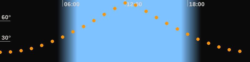 | Höchster Stand (Kulmination) | 12:16 Uhr (h = 87°) |
