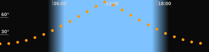| Höchster Stand (Kulmination) | 12:08 Uhr (h = 87°) |