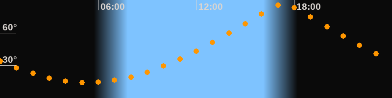 | Höchster Stand (Kulmination) | 17:20 Uhr (h = 87°) |