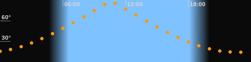 | Höchster Stand (Kulmination) | 10:37 Uhr (h = 87°) |