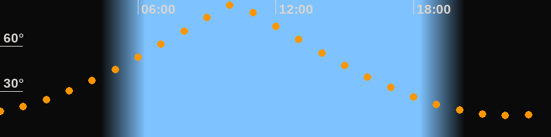 | Höchster Stand (Kulmination) | 10:10 Uhr (h = 87°) |