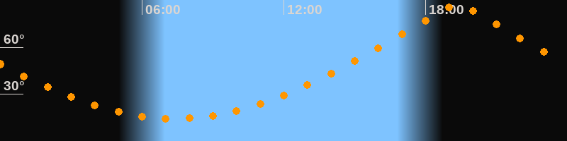 | Höchster Stand (Kulmination) | 19:21 Uhr (h = 87°) |