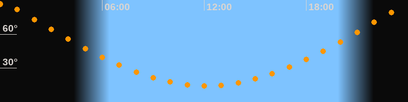| Höchster Stand (Kulmination) | 00:06 Uhr (h = 87°) |