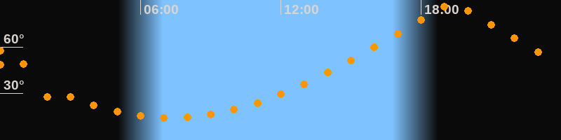| Höchster Stand (Kulmination) | 19:19 Uhr (h = 87°) |