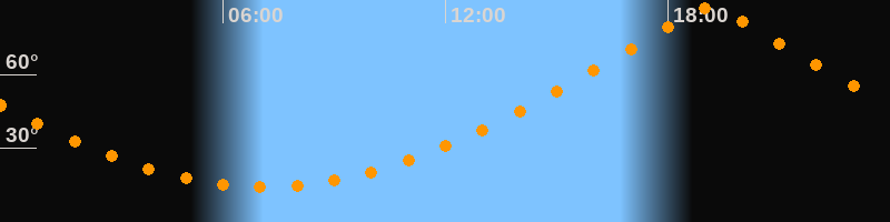 | Höchster Stand (Kulmination) | 19:07 Uhr (h = 87°) |