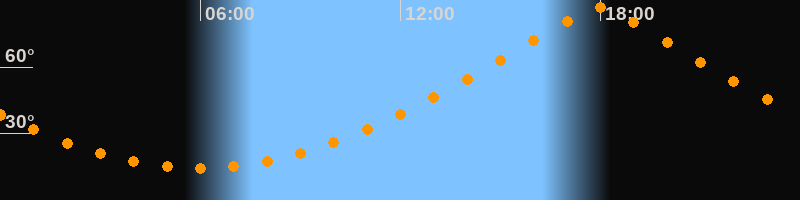 | Höchster Stand (Kulmination) | 17:56 Uhr (h = 87°) |