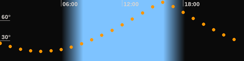 | Höchster Stand (Kulmination) | 16:02 Uhr (h = 87°) |