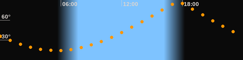 | Höchster Stand (Kulmination) | 17:35 Uhr (h = 87°) |