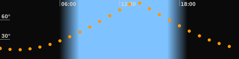 | Höchster Stand (Kulmination) | 13:36 Uhr (h = 87°) |