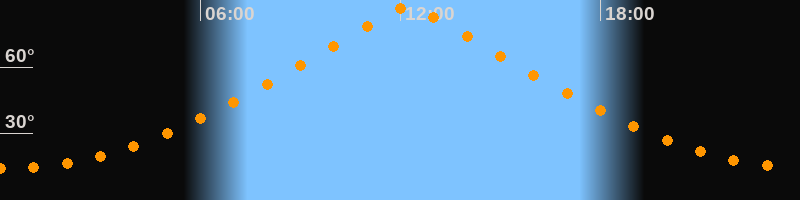 | Höchster Stand (Kulmination) | 12:14 Uhr (h = 87°) |
