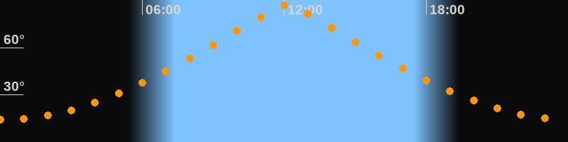 | Höchster Stand (Kulmination) | 12:06 Uhr (h = 87°) |