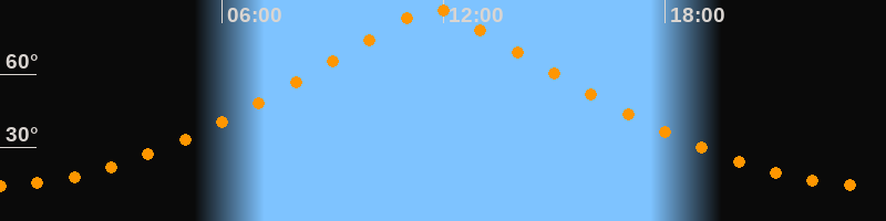 | Höchster Stand (Kulmination) | 11:43 Uhr (h = 87°) |