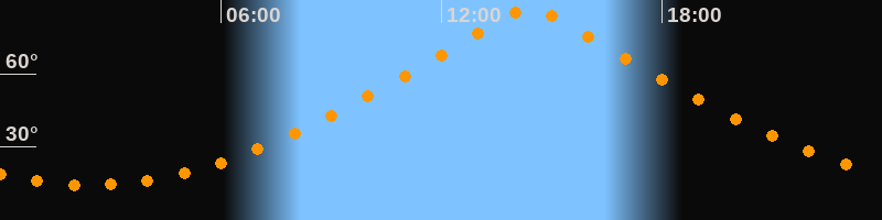 | Höchster Stand (Kulmination) | 14:25 Uhr (h = 87°) |