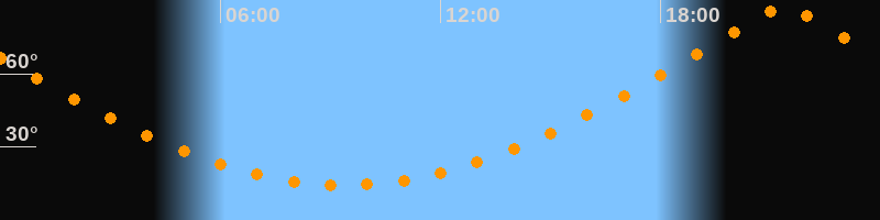 | Höchster Stand (Kulmination) | 21:23 Uhr (h = 87°) |