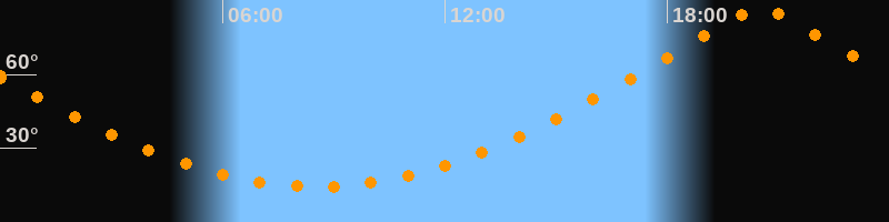 | Höchster Stand (Kulmination) | 20:31 Uhr (h = 87°) |