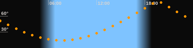 | Höchster Stand (Kulmination) | 19:36 Uhr (h = 87°) |