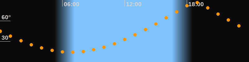 | Höchster Stand (Kulmination) | 18:49 Uhr (h = 87°) |
