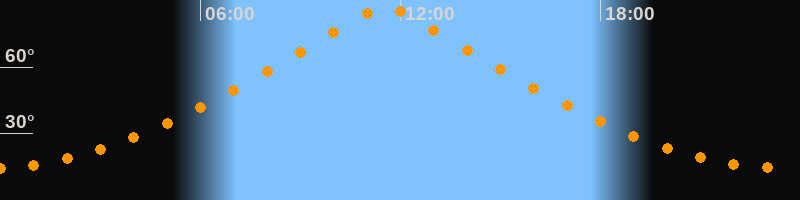 | Höchster Stand (Kulmination) | 11:33 Uhr (h = 87°) |