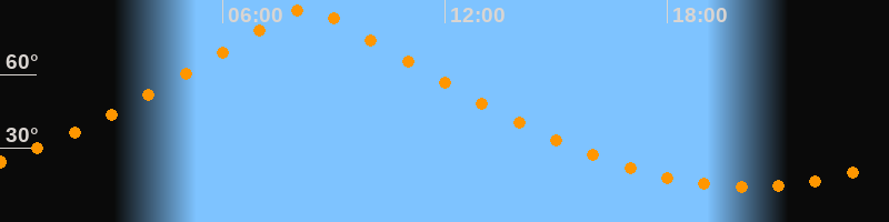 | Höchster Stand (Kulmination) | 08:16 Uhr (h = 87°) |