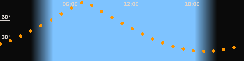 | Höchster Stand (Kulmination) | 08:12 Uhr (h = 87°) |