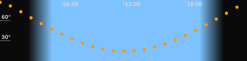 | Höchster Stand (Kulmination) | 00:05 Uhr (h = 87°) |
