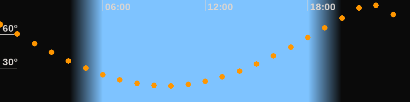 | Höchster Stand (Kulmination) | 21:39 Uhr (h = 87°) |